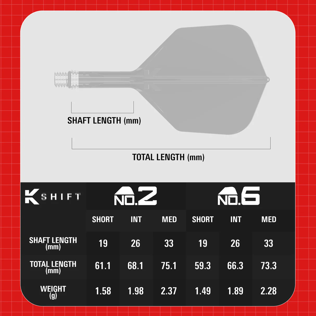 Available in Short (19mm), Intermediate (26mm), and Medium (33mm) lengths, and offered in No.2 and No.6 flight shapes, K-Shift provides players with maximum customisation to fine-tune balance, trajectory, and release. Designed for durability, adaptability, and high-level performance, K-Shift represents the next step in integrated dart system technology.